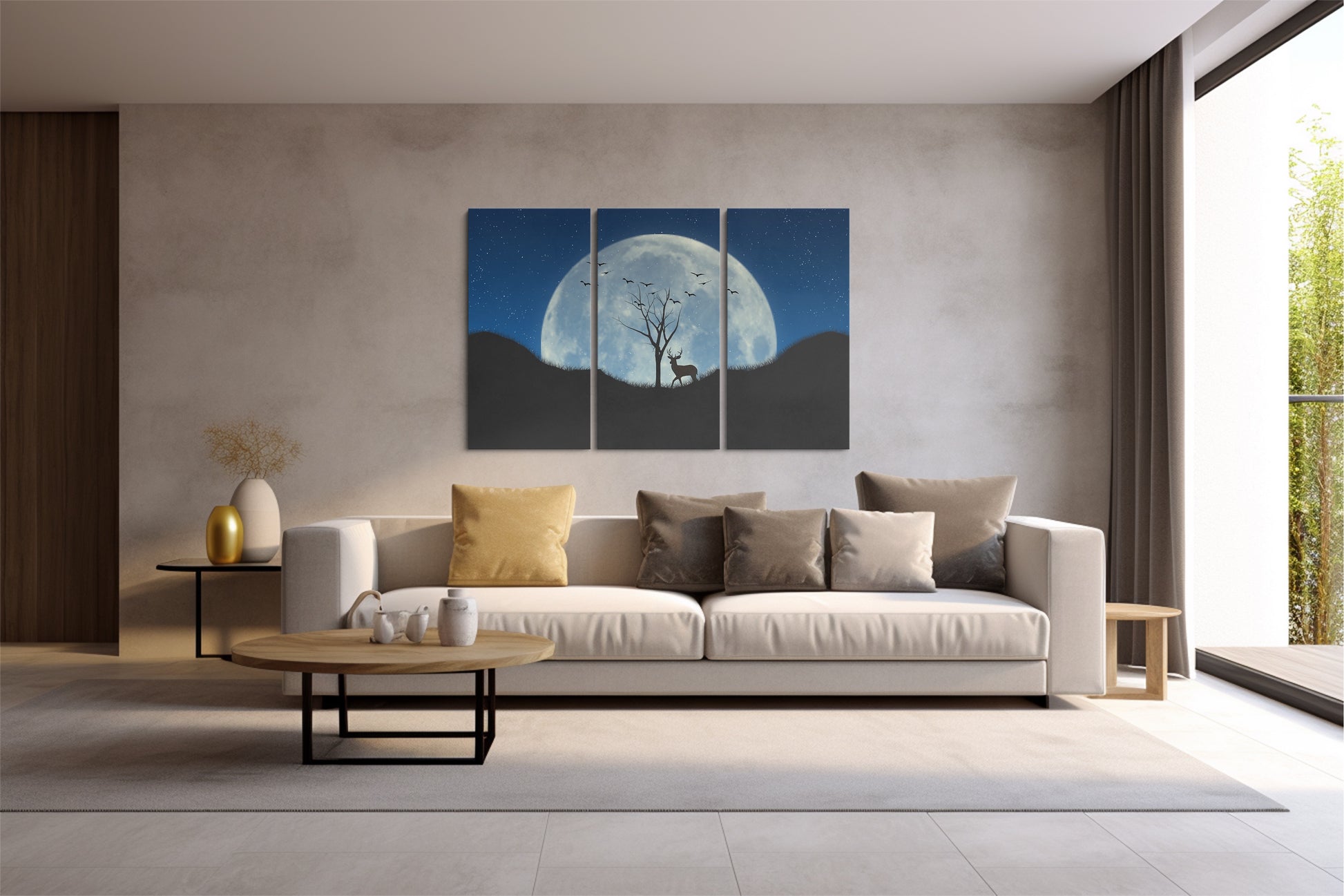 Tablou 3 Piese Deer Under The Moon