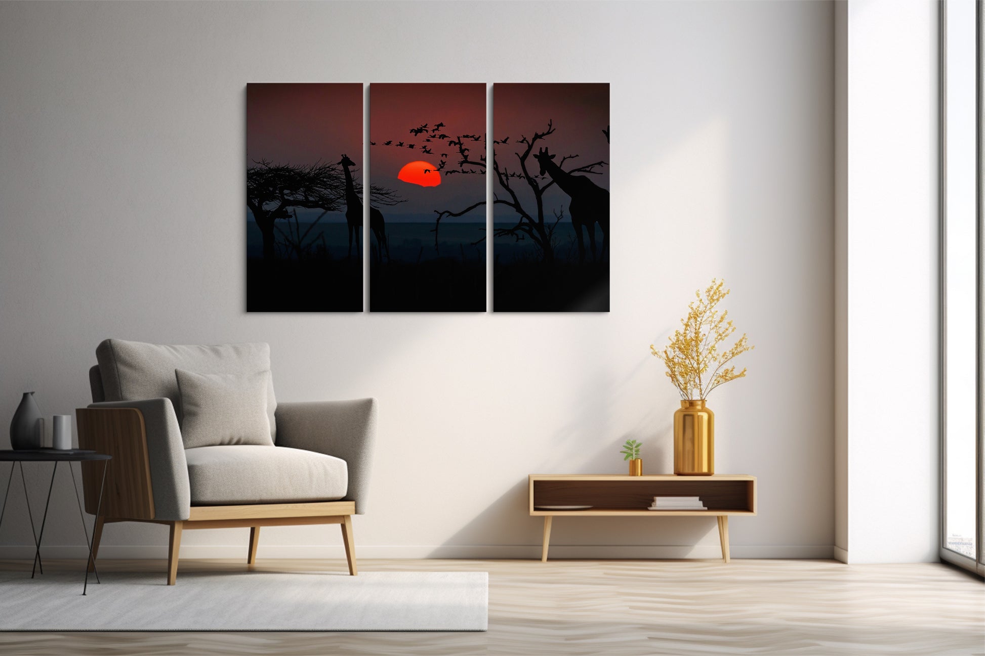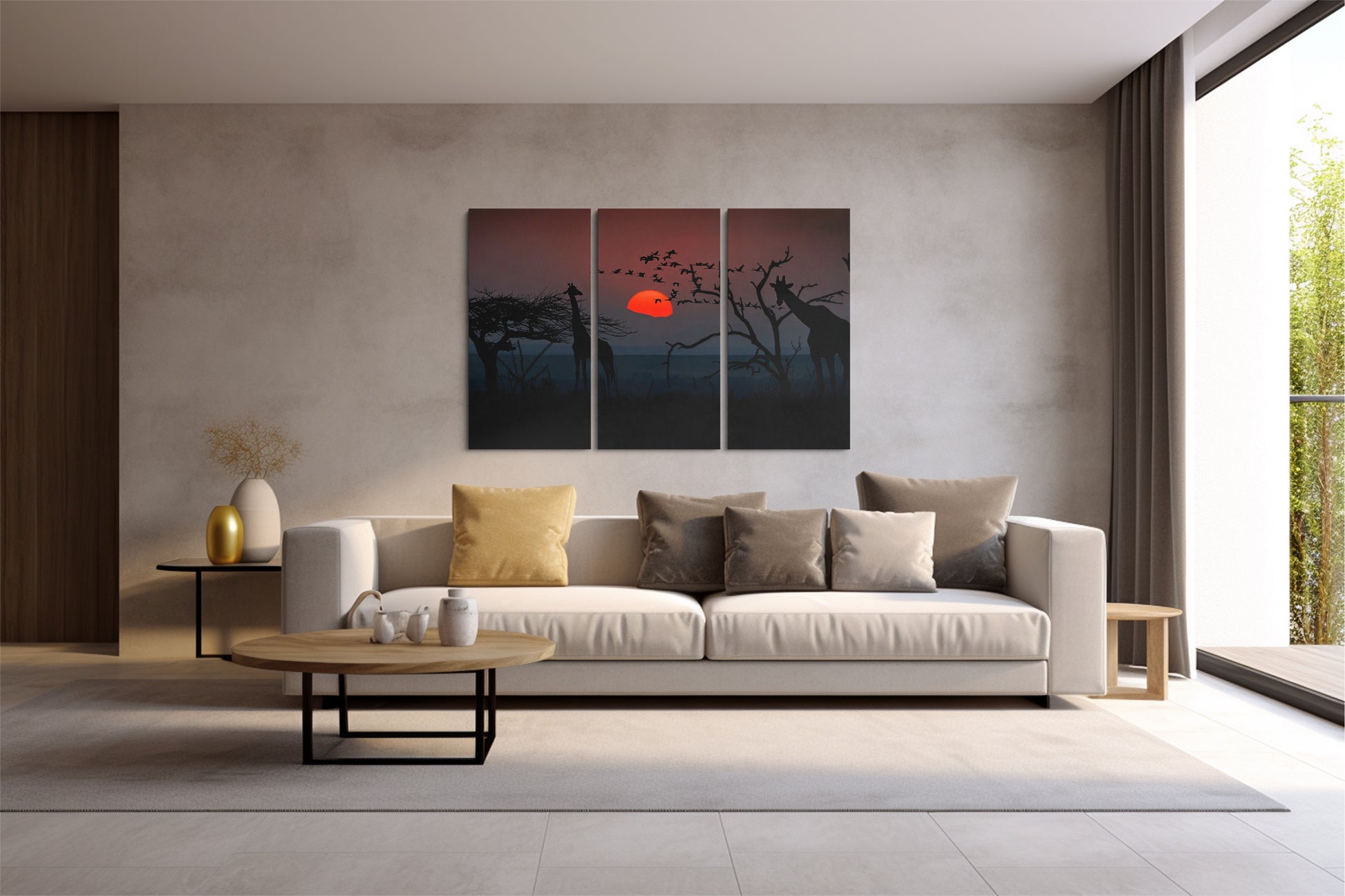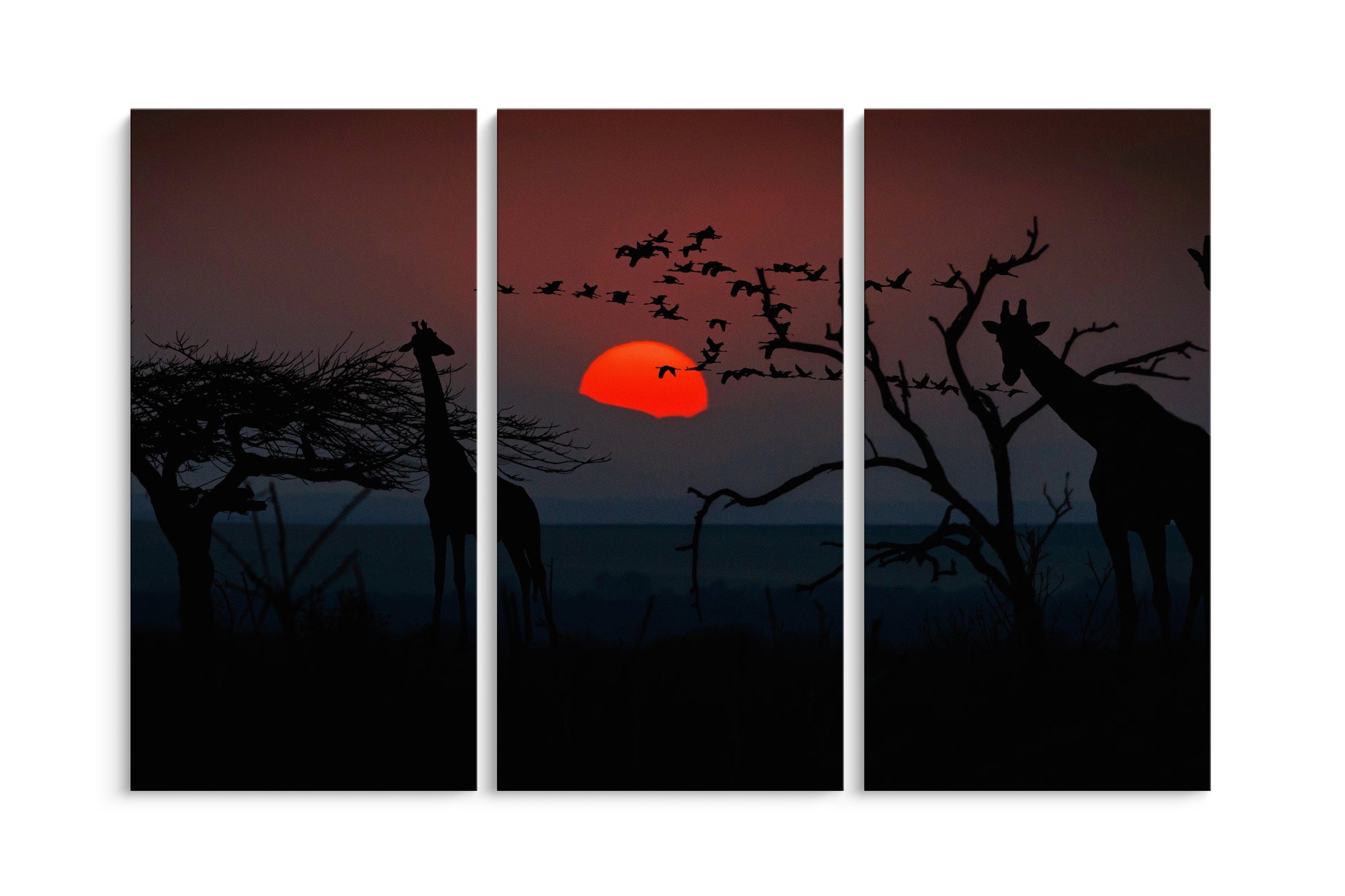 Tablou 3 Piese Girafa Si Apusul