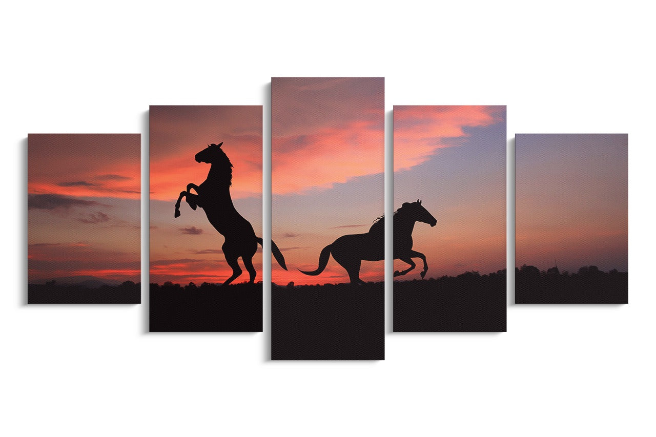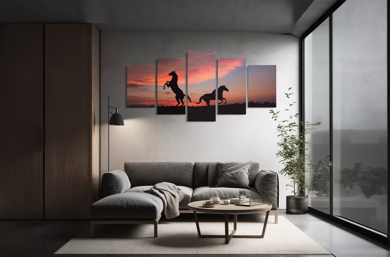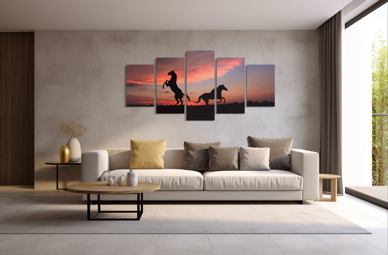 Tablou 5 Piese Caii Sub Cerul Rosu