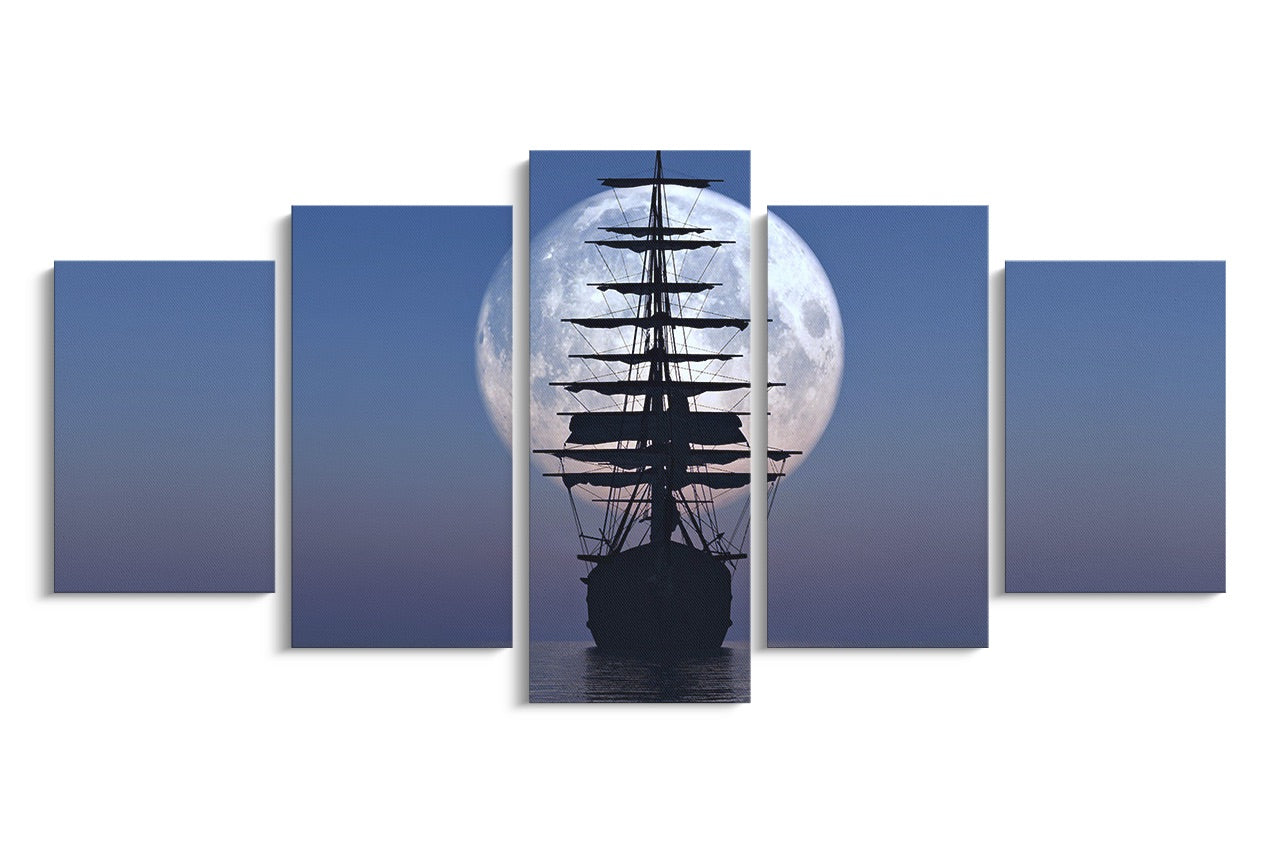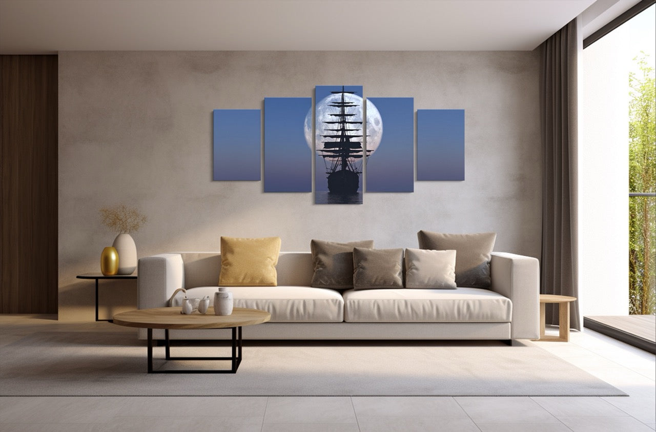 Tablou 5 Piese Velierul Si Luna
