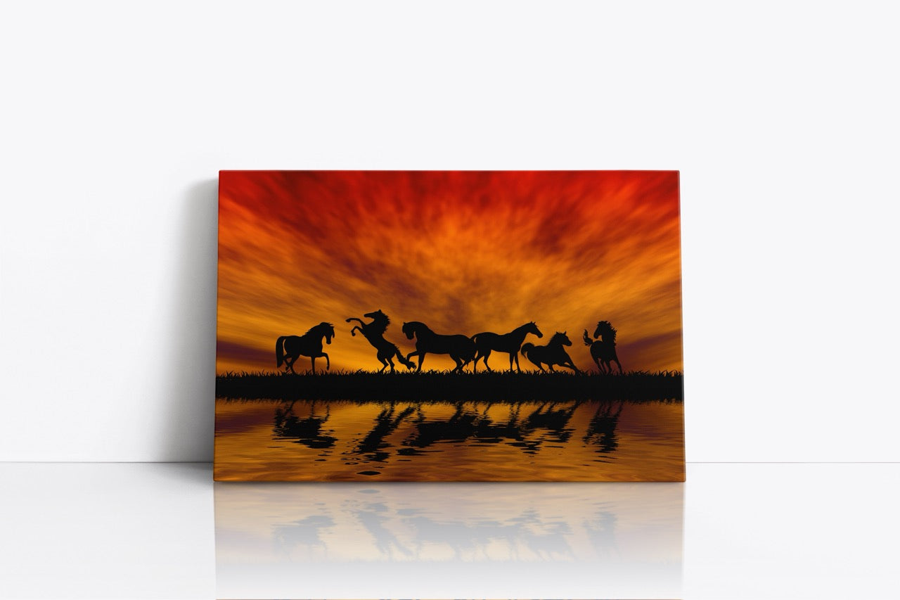 Tablou Canvas Caii Sub Cerul Roșu