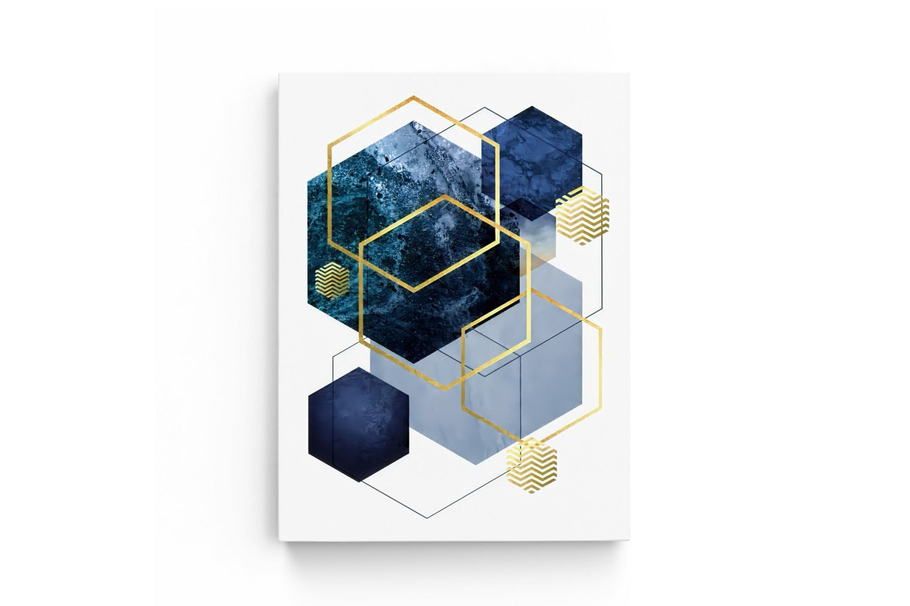 Tablou Canvas Hexagon Albastru & Auriu